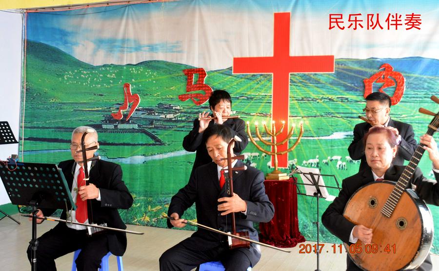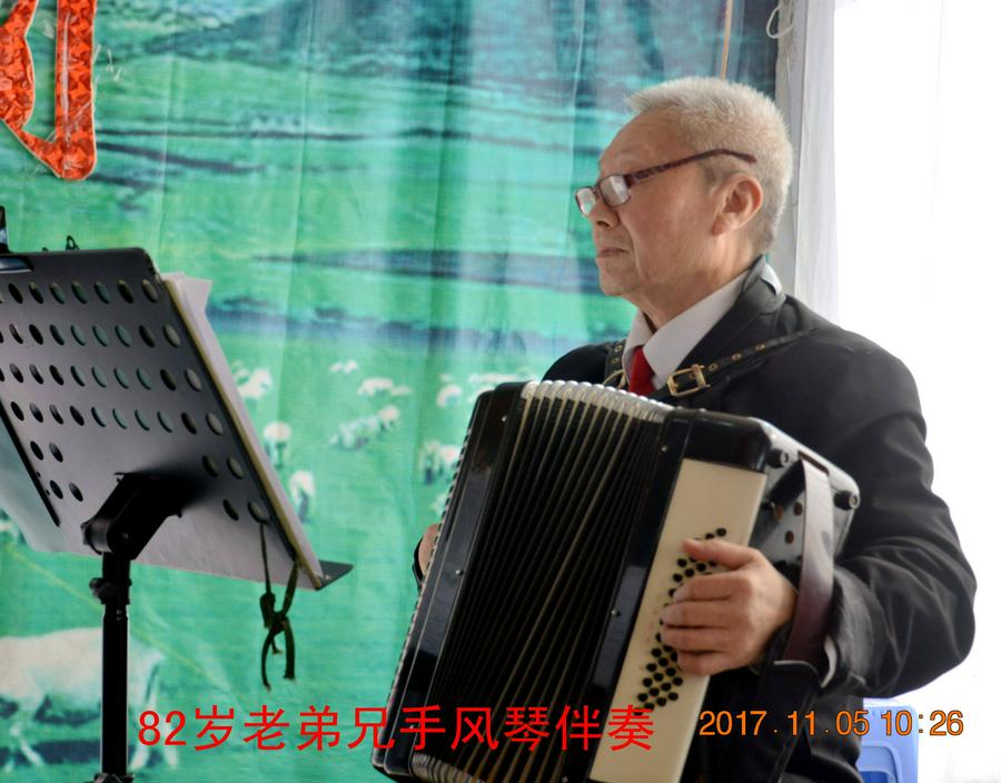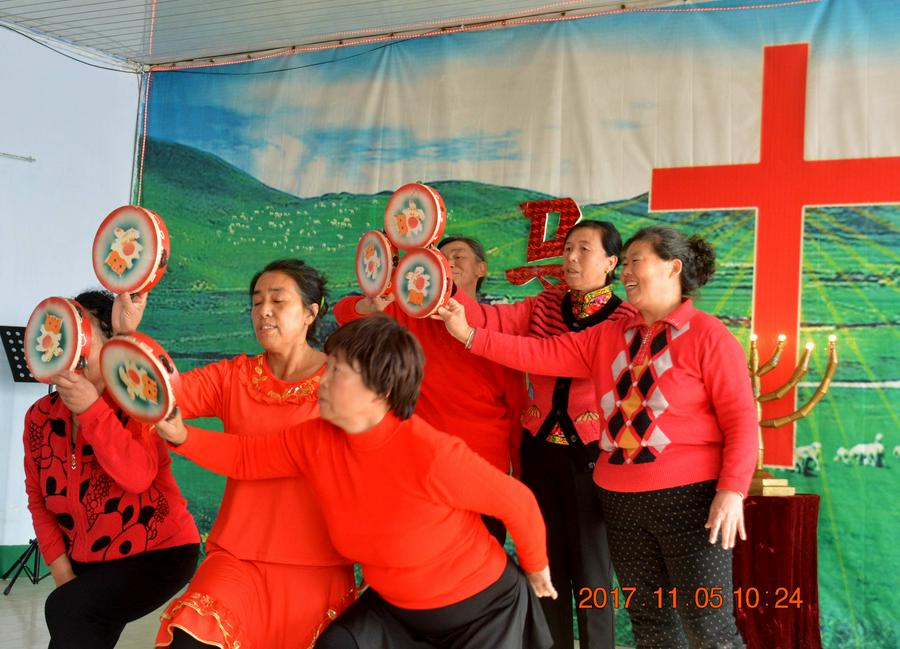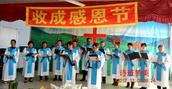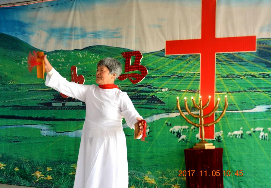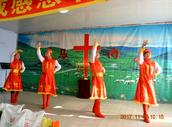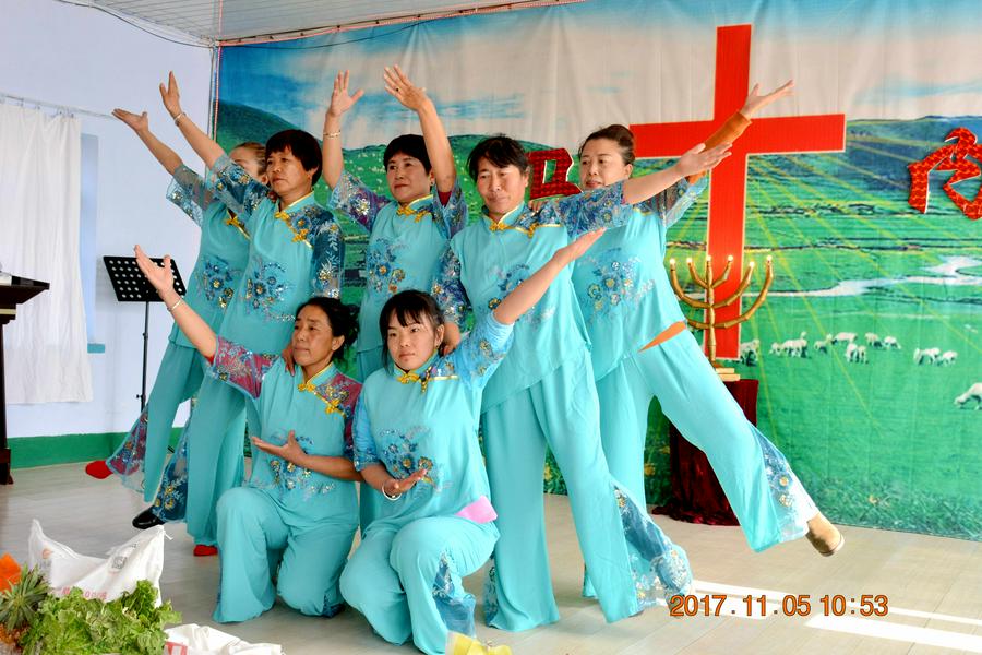 在果子园教会不大的舞台上,来自教会不同的团契和各村的信徒,与鞍山市来的同工们一起表演了精彩的节目,大家载歌载舞,齐声赞美,持续了两个多小时赞美三一的神、感谢神赐给的秋成丰硕。