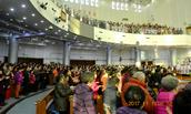 清晨,丰收堂的会众从四面八方向神的圣殿聚拢,男女老幼,每个人脸上都充满喜乐和兴奋,能容纳3000多人聚会的大厅座无虚席,众人静候感恩节的开幕。