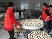 此次活动由胜安基督教会、东营爱德护老院、齐商银行东营分行联合赞助。志愿者们来到敬老院,和面、剁馅,给老人们包起了一屉屉大包子。