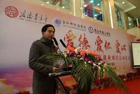 12月15日,爱德基金会携手昆山宗仁卿纪念医院和昆山市爱心学校举行爱德面包坊康复就业项目启动仪式,本次启动仪式的主题是“爱德、爱仁、爱心”。在昆山市统战部、昆山市民宗局的推介和支持下,昆山市基督教两会协助促成了爱德基金会与宗仁卿纪念医院和昆山市爱心学校的合作,开设昆山爱德面包坊。合作项目开启了爱德面包坊服务残障人群的新篇章。出席本次活动的领导有爱德基金会常务副理事长兼秘书长丘仲辉、昆山市委统战部副部长、昆山市民族宗教事务局局长许征、昆山市基督教三自爱国运动委员会主席闻新贵、昆山宗仁卿纪念医院总经理宗绪惠、昆山开发区台商投资服务办公室副主任孙智慧等。