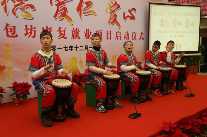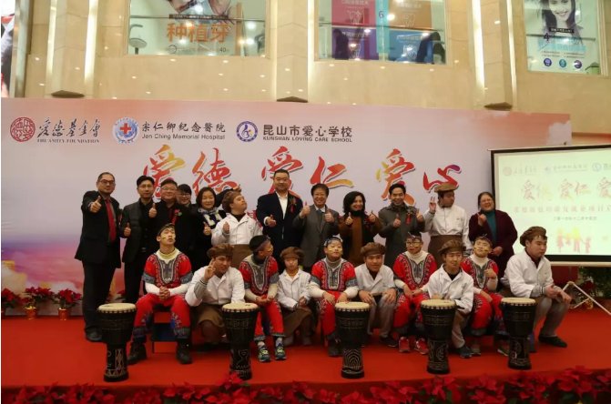 昆山市爱心学校校长管文娅带着昆山爱心学校的学生来到了启动仪式上,学生们在现场表演了两首激情四射的非洲鼓,还给大家带来了他们亲手制作的爱心面包。在发言中,管校长说到,非常感谢爱德基金会、宗仁卿纪念医院为我们提供此次合作的机会,为我们的残障孩子提供专业培训和个性化的工作岗位,助力融入社会,为特殊需要的人群提供更好的帮助。在谈到今天的非洲鼓表演,管校长说到这些孩子花了一年的时间去学会这个表演,对于这些特殊的孩子需要更多的时间和耐心,也希望孩子们在昆山爱德面包坊找到就业的机会,通过自己的劳动参与,获得社会的认可,提升自我的尊严和价值,这样他们的家庭也能更加的和谐美好。