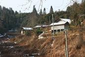 汽车沿着只有一车道宽的盘山路向上行驶,往车外望去,是一片片的树林,偶尔可见被山林环抱的村庄。