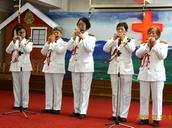 首先,由陈宁宁教士做了题为《除罪的羔羊》的证道,会众在福音中重温主耶稣基督宝血洒在十字架为世人赎罪的恩典,然后彩排开始。