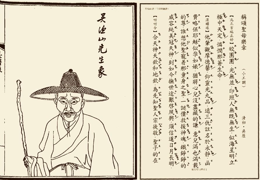 《天乐正音谱》的这些套曲,“寓情于理,敦挚诚笃,如见耆年大德,耳提面命,自非学养深厚,艺与道合者,孰能臻此。”(郑骞:《天乐正音谱·跋》)所谓“艺与道合”,堪称对吴历将中国传统音律与西方天主教思想完美结合的最好的表述了。