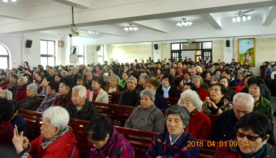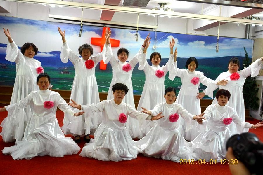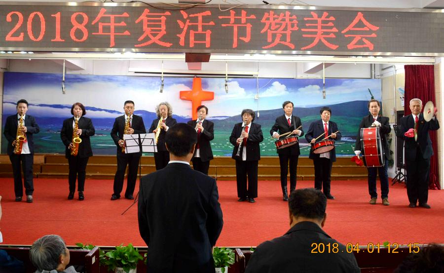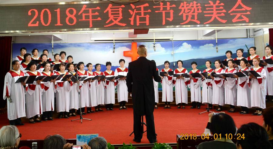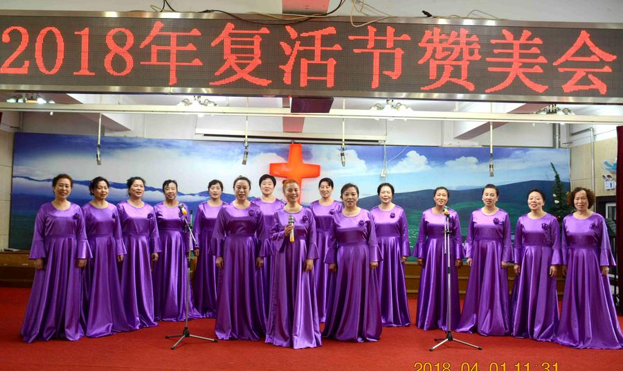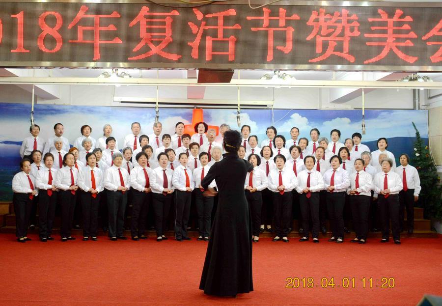 鞍山绿化街教会的会众在主耶稣受难周一系列的纪念活动之后,满怀喜乐和感恩之心欢庆复活节。