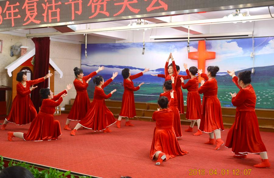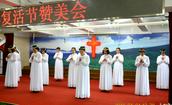 讲道结束后,辽宁省基督教两会主席史爱军长老莅临现场,再次强调了主复活的伟大、深远意义,并和袁明牧师带领会众献诗,而后绿化街教会的复活节庆祝活动拉开了序幕。教会各个团契和聚会点把精心准备和精心排练的赞美诗、舞蹈、快板、独唱、诗歌、器乐合奏、朗诵等节目呈献给救主耶稣基督,会场掌声不断,一切颂赞、荣耀归三一的神。