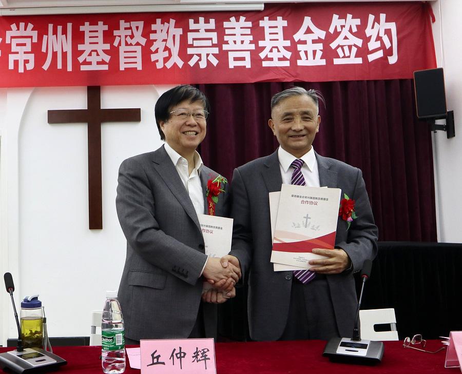 签约仪式上,丘仲辉理事长、梁化平牧师分别代表爱德基金会、常州市基督教两会签约,互相交换文本。