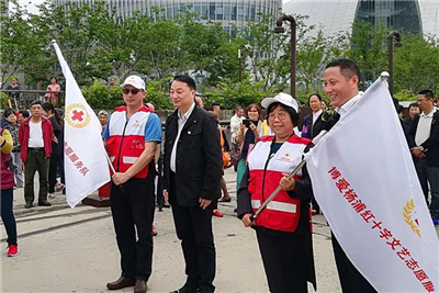 杨浦区基督教“爱之源”的21位义工骨干在杨浦区基督教三自爱国运动委员会主席王建华带领下,分别代表“博爱杨浦红十字文艺志愿者服务团、杨浦区大桥街道红十字会、爱之源红十字志愿服务队、夕阳添辉遗体捐献志愿者联谊会”4支队伍参加了义跑活动。