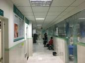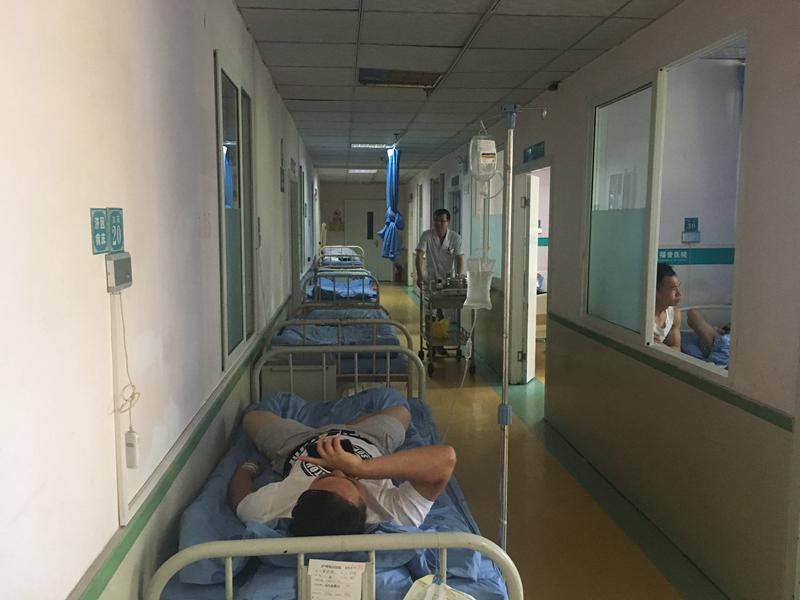 绕着医院走了一圈,病人依旧来来去去,笔者看到,在住院处,连走廊里都摆着床位,有患者躺在上面输液。