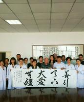 院方接待了李牧师一行,并且介绍了医院和孩子们的情况,李牧师则询问了孩子们的需要。双方就社会关怀这一话题进行了经验交流。院方回赠了“善行天下,大爱无疆”的书法字画。