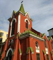 哈尔滨市南岗礼拜堂坐落于哈尔滨市南岗区东大直街252号,原名路德教堂,该堂属德国哥特式建筑风格,是国家一级保护建筑。