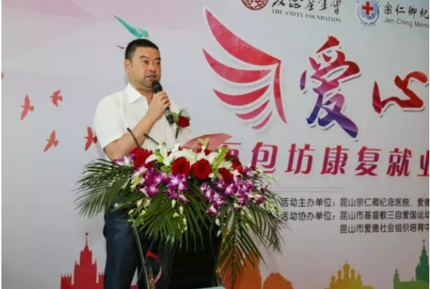 昆山市委统战部副部长、昆山市民族宗教事务局局长许征首先代表昆山市统战部、宗教局对爱德面包坊开业表示了热烈祝贺及崇高的敬意与感谢。他指出,慈善是仁德和善行的结合与统一,昆山爱德面包坊项目书写了昆山宗教慈善事业的新篇章,它不仅帮助残障人士进行职业培训和庇护性就业,也引导着广大社会公众以慈善心、公益心和仁爱心一同来关注有需要的人,助推公益慈善事业的发展,有着积极的影响和深远的意义。