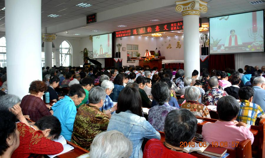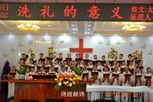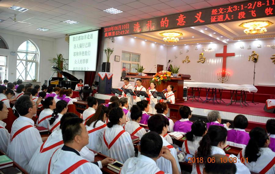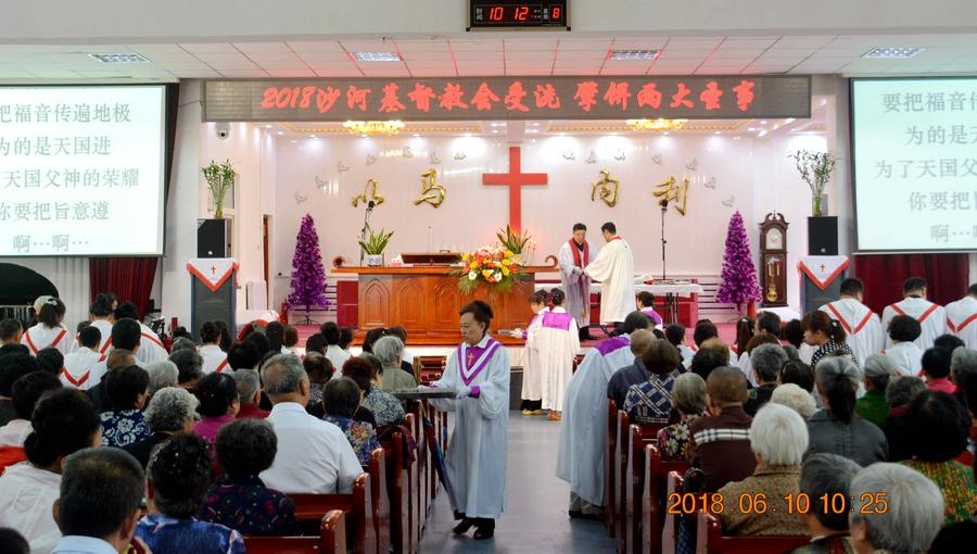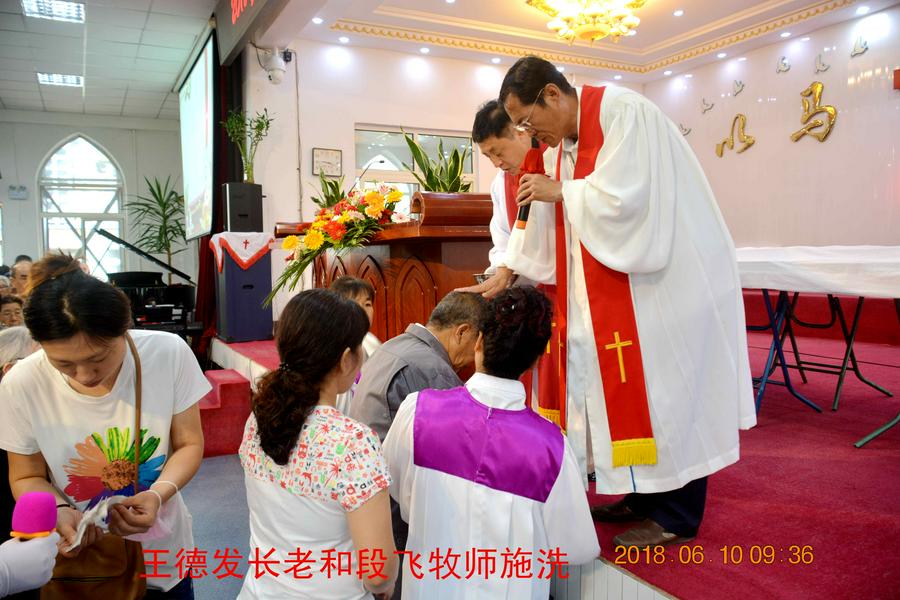 上午,教会的会众们满怀喜乐的心情早早来到沙河教堂,楼上楼下座无虚席,齐声读经、赞美、祷告。在圣诗和圣乐中,王德发长老身着白色圣服,主持了“2018年沙河基督教会受洗擘饼两大圣事”,段飞牧师带领会众诵读圣经马太福音有关章节,以“洗礼的意义”为题,分水洗、灵洗、火洗三个层面为主证道。
