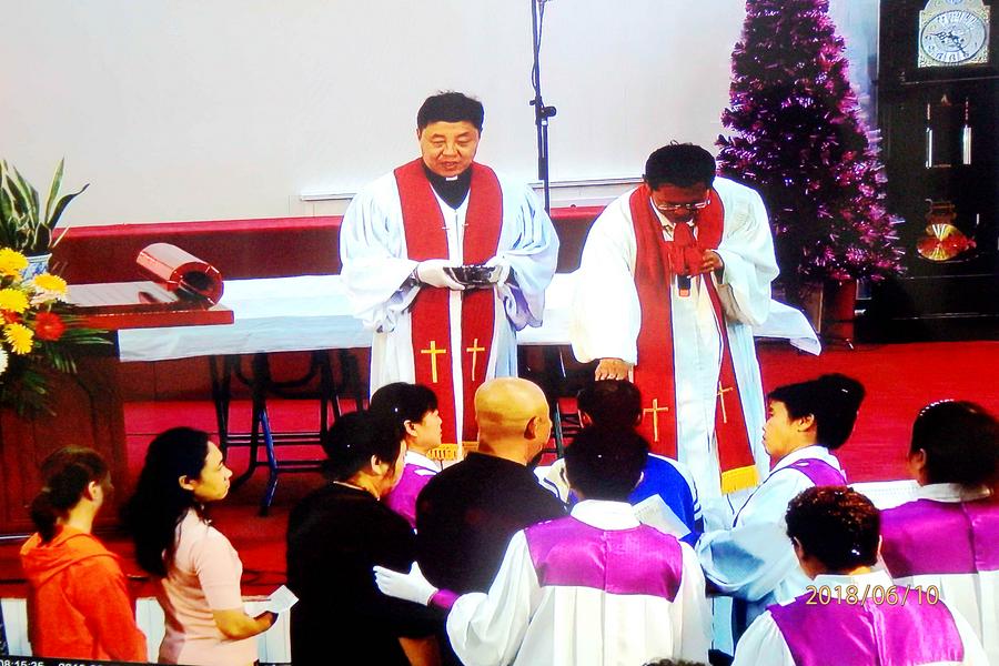 两大圣事结束后,笔者看到诗班同工起立,歌诗赞美神,目送同工平安回家;有的继续和王长老交通和倾诉见证的;有的同工互相握手问候、道别,在神赐给的一片祥和氛围中圣事圆满拉下帷幕。