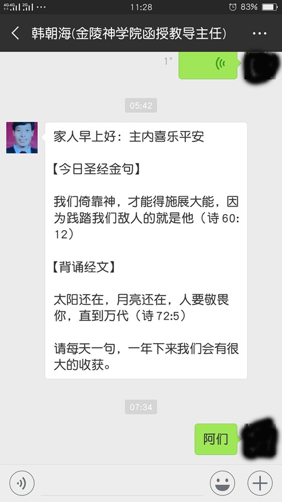 近日接到信徒反映,“韩朝海”以“金陵神学院函授教导主任”的身份在各地教会招收学员事宜,金陵协和神学院圣经函授班在此郑重声明:此人以及此人所有的招生、授课、结业等工作与我金陵协和神学院圣经函授班无关。请学员谨慎甄别,防止上当。