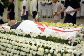 最后,在赞美诗《再相会歌》的颂唱中,大家迈着沉重的脚步,一个个向傅长老的遗体献上鲜花。