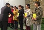 在结业仪式上,黎明牧师劝勉,为结业学员颁发结业证书及纪念品并合影留念,还为满勤学员颁发纪念奖品。