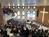 整个礼拜堂的上下两层座无空席,信众在神的话语中大得圣灵充满,并立志过喜乐得胜的生活。