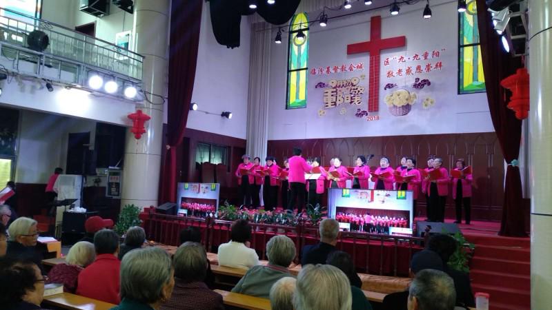 九时三十分感恩崇拜开始,由谢春兰长老主持,首先以利未记19:32经文宣召:“在白发人面前,你要站起来,也要尊敬老人,要敬畏你的上帝,我是耶和华。”会众齐唱了新编赞美诗188首《孝亲歌》,诗班献唱了诗歌。杨国华长老为崇拜献上了代祷。此后宣读了路加福音2:25—35;诗篇90:12的经训。