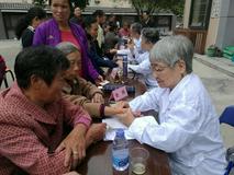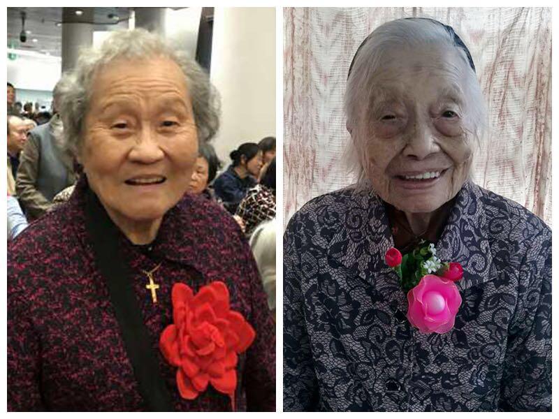 随后,九十岁以上老人(其中100岁以上有8人,最高寿达108岁)戴着大红花上台接受堂会的祝福!