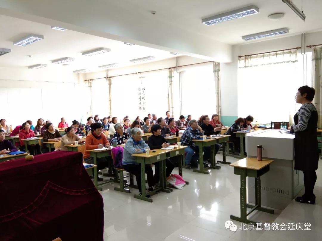 2018年10月20日,延庆堂50多名义工准时来到延庆社区教育中心教室,虽然有些义工年龄偏大文化水平不高,却都积极参加学习、记笔记、参与互动、讨论。社区教育中心祁主仁韩主任亲自到场组织学习,并为学员讲解延庆区迎接2019年世园会2020年冬奥会的准备工作及工程进展。社教中心三位老师牺牲星期六的休息时间热心为我们这些基督教会志愿者讲解世园会、冬奥会、接待礼仪方面的知识。在愉快的学习中学员和老师建立了融洽的关系,大家积极学习的热情也得到了社教中心领导的肯定。