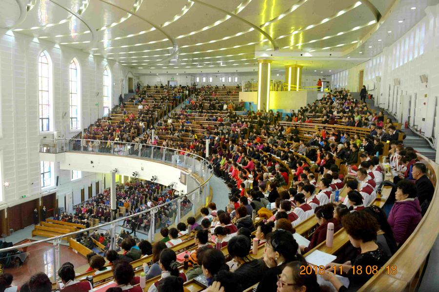 “播撒福音种,收获生命果,荣耀归给神”。丰收堂的信徒们牢记主的教导:“我们既得了不能震动的国,就当感恩,照神所喜悦的,用虔诚、敬畏的心事奉神。”(希伯来书12:28)大家满怀虔诚、敬畏和喜乐的心齐聚一堂,可容纳三千余人的丰收堂楼上楼下座无虚席。会众读经祷告、歌诗赞美,为神献祭,感谢神一年来赐给的各样属灵的收获和恩惠。