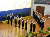 大连市基督教爱国运动委员会主席赵永刚主任牧师与会众分享圣经利未记和诗篇的有关经文,并以知恩、感恩、报恩和举起耶和华救恩的杯、称谢耶和华、报答神的恩典、要向神还我们的愿为内容,为主证道。随后,丰收堂的秋成感恩赞美会启幕。丰收堂的各个团契以诗篇、歌曲、舞蹈、律动、短剧等多种文娱形式、三十多个节目,载歌载舞、颂赞主恩,把感恩之情献给三一的神,会场被圣灵充满,掌声不断,荣耀归神。