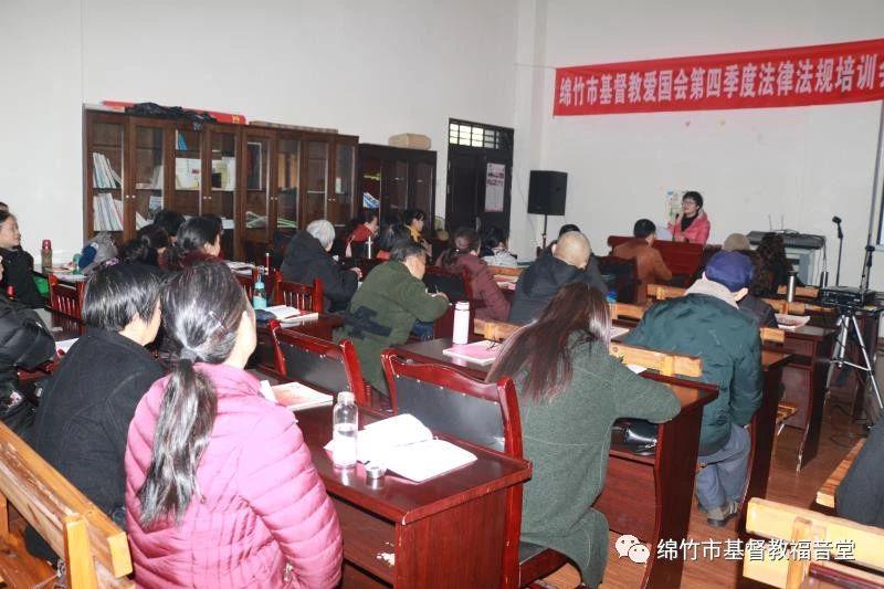 2018年12月1日早上8:30, 绵竹市各个镇乡基督教爱国会代表齐聚福音堂,学习《新宗教事务条例》、学《安全知识》,一起共商圣诞节各项事工。培训结束后,代表们开展了消防演练。