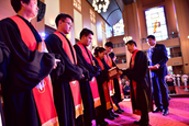 按立仪式结束后是授圣带仪式和颁发证书;最后,执礼牧师向受职牧师赠送圣经和鲜花表示祝贺。整场圣职按立典礼庄严神圣,井然有序,令人肃然起敬。本次典礼按立李荣(女)、陈恩惠、娄海娇(女)、刘恒、操金锁、黄芬勤(女)、李静芳(女)、赵秋菊(女)为牧师,按立徐志光(女)为长老。