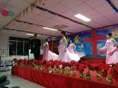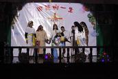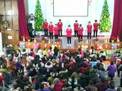 下午1:00开始圣诞节目汇演,有诗班大合唱《哈利路亚主降生》、《荣耀归神》、《救主颂》、圣剧《财主与拉撒路》、萨克斯独奏《不能拒绝的爱》、腰鼓舞蹈《载歌载舞庆圣诞》等节目,弟兄姊妹经过长时间的排练,在庆祝耶稣降生的日子里把最好的献给主耶稣。