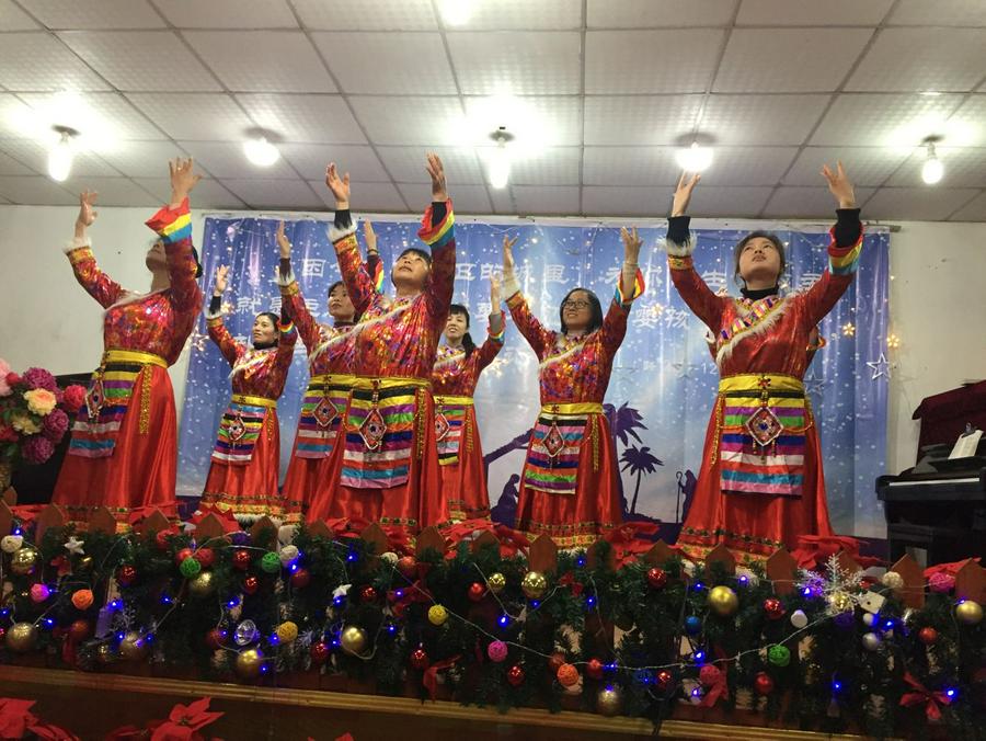 12月24日晚上6点,腰鼓队的姊妹们在教堂门前敲起了腰鼓,她们以最饱满的热情迎接每一个到教堂过平安夜的主内肢体和朋友,平安夜庆祝活动在王丽芬牧师的祷告声中拉开帷幕,有笛子独奏《圣诞佳音歌》、弟兄舞蹈《我们是亲兄弟》、姊妹舞蹈《祝福中华》等精彩节目。参加圣诞节和平安夜活动的有1300人左右,愿神大大祝福来到他面前的每一位儿女,也愿得救的人数天天加增。