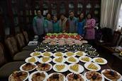 还没有到中午,弟兄姊妹都陆续的来到堂里,大家有的和面,有的擀皮,有的调馅儿,有的包饺子,有的准备凉菜,有的摆放座椅和布置现场环境,除夕爱宴在大家的说说笑笑中准备着。