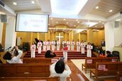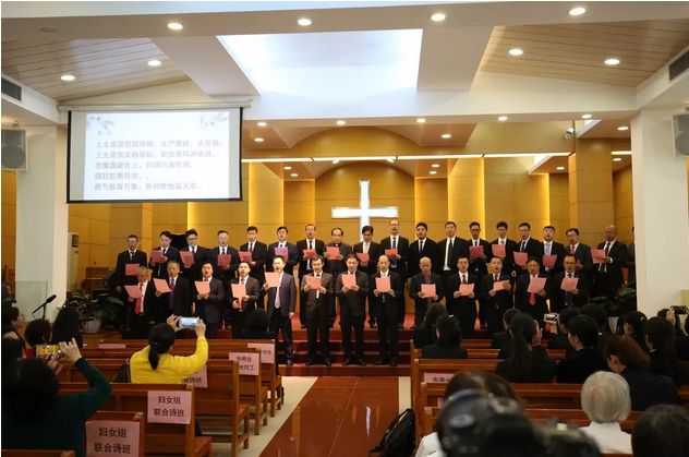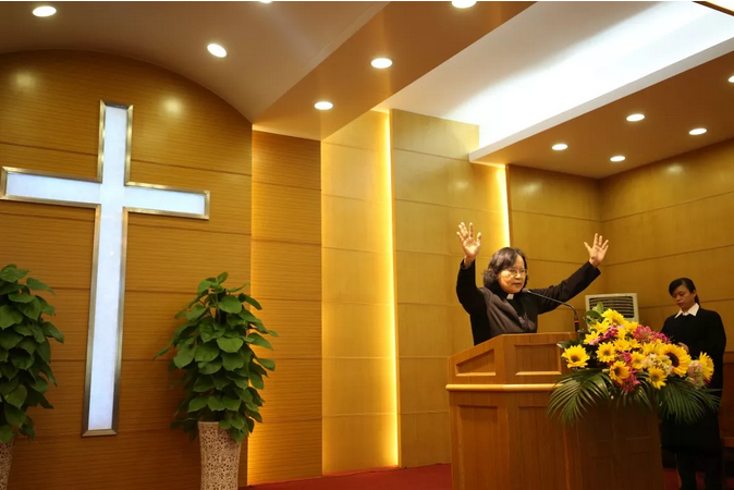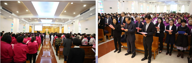 崇拜依始,在赞美诗《神工妙笔歌》的伴奏下,万小蕊牧师宣布崇拜开始,会众全体起立同心颂唱,并在谢冰牧师的领祷中向上帝献上感恩与赞美。