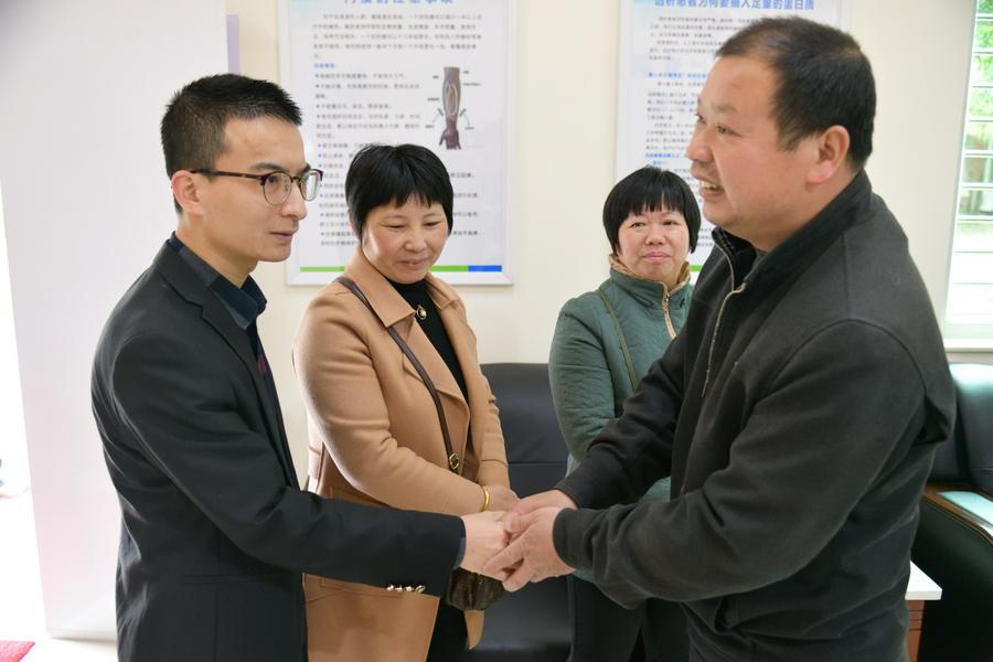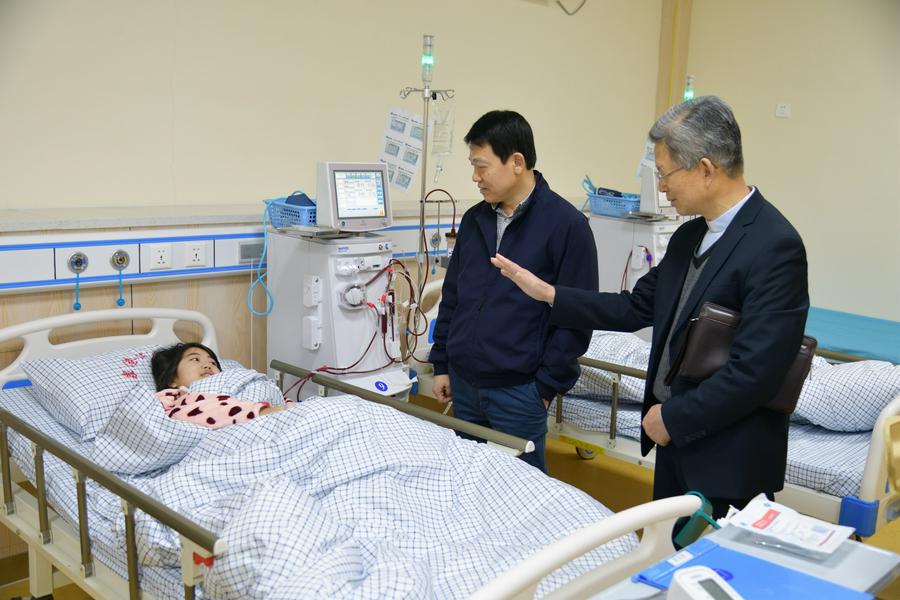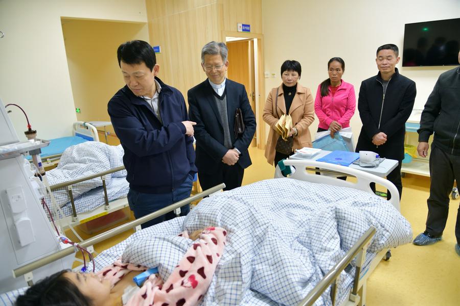 陈龙津部长在透析室看望了正在接受透析的林琴英同学,叮咛她积极乐观地接受治疗,要有顽强战胜病魔的信心和勇气。他叮嘱医护人员尽全力做好林琴英同学的治疗和护理,帮助她早日回到学校学习。他告诉林爸爸:照顾好女儿,有任何困难,大家都会继续给予支持和帮助。刘荣喜牧师也鼓励林琴英同学:人间有爱,爱在走动,要勇敢面对眼前暂时的病魔,很多人都在关注并给予她帮助,同时祝愿林同学早日康复。