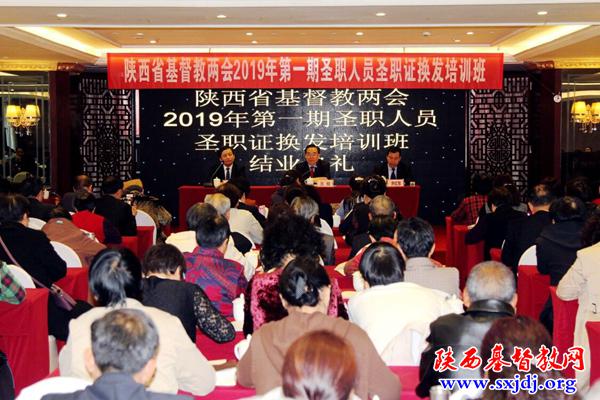 在结业典礼上,王俊牧师作了勉励讲话。他首先总结了本次培训班的几个特点:4天时间安排紧凑,学习了8门课程,内容丰富,老师授课认真精彩,学员们态度认真,展现了良好的精神面貌和较高的综合素质。为进一步服侍好全省教会,使神的名得荣耀,提出了几点勉励:一是要重视自己的身分、尊重职分。要为传道人员、教会信徒在言语、行为、信心、爱心和清洁上做榜样,对自己高标准严要求;要传纯正、全备的福音真理,按正义分解真理的道。努力熟悉圣经、研读圣经,装备丰富的圣经知识,以此很好地抵制异端邪说;做好教会的守望者,处理好与同工的关系,团结和谐,共荣共生。二是处理好教规与法律之间的关系。信仰无国界,信徒有国籍。要爱国爱教,遵守国省两个《宗教事务条例》及国省两个《教会规章》,学法、知法、守法,用法律维护自身合法权益和维护教会组织的权威,依法开展教会各项活动,通过规范程序解决问题。三是要低头拉车,也要抬头看路。传福音是圣职人员的神圣使命,让更多人归入耶稣的名下是大家的责任,但如果不能把握好方向,走正确的道路可能就会有问题。这个道路、方向就是坚持三自原则,抵御境外势力渗透,走独立自主的爱国爱教道路;方向就是要继续深入推进神学思想建设,用正确的神学思想指导讲台事工,广泛深入开展基督教中国化事工,走与社会主义社会相适应的道路。四是要加强自身建设,打美好胜仗。打铁还需自身硬。全省教会要加强组织建设、制度建设、人才建设及思想建设,发挥自身建设积极作用。