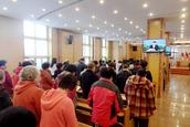 “我的心哪!平稳安静,专心等候基督。”今天,安静日,基督教会大连泉水堂的弟兄姊妹按照这一周的聚会安排日程,陆续的来到教堂,有秩序的就坐,在同工的带领下歌诗赞美,安静的读经祷告和灵修。在圣诗班轻轻而沉稳的踏入圣坛后,全体会众进入崇拜赞美。
