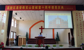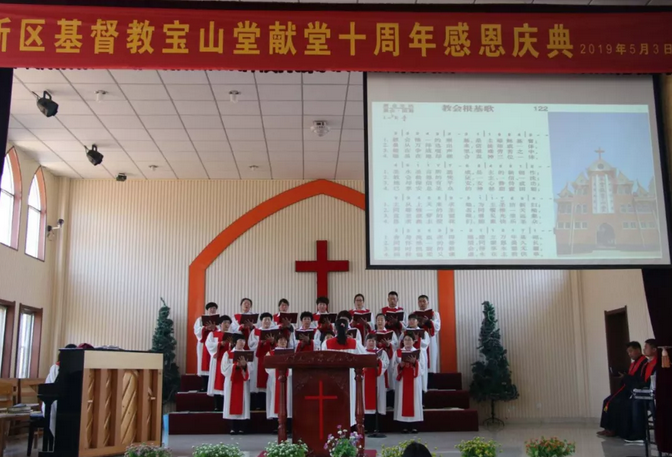 2019年5月3日上午9时,山东临沂高新区龙湖办事处湖西崖基督教宝山堂献堂十周年感恩庆典,在临沂高新区龙湖办事处湖西崖宝山堂隆重举行。应宝山堂教会堂委同工的邀请,高新区基督教两会牧长及全区各教会同工父老弟兄姊妹近400人参加了本次庆典,大家欢聚一堂,共同见证了这一神圣而庄严的历史时刻!
