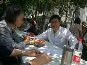 笔者也排队测了血糖,可能是刚吃过饭的缘故吧,血糖偏高,医生笑着说,不用担心,下次空腹或饭后两小时再测,这样会比较准确。听医生这样说才放了心。