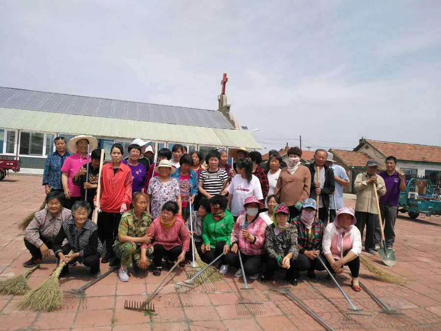 敦化市红石乡活动点负责人李秀芝执事看到上黑、友好、贤儒等教会都行动起来,又听说村里雇人打扫卫生已经两天了,26日早上四点,就在教会同工群里通知开展清洁卫生的决定。并与村书记联系,表示要义务清扫街道卫生。