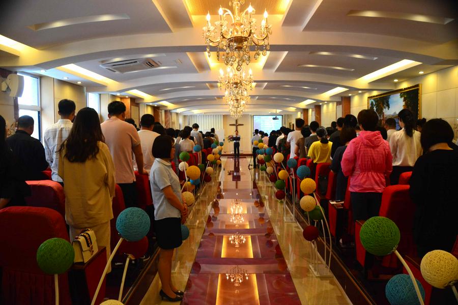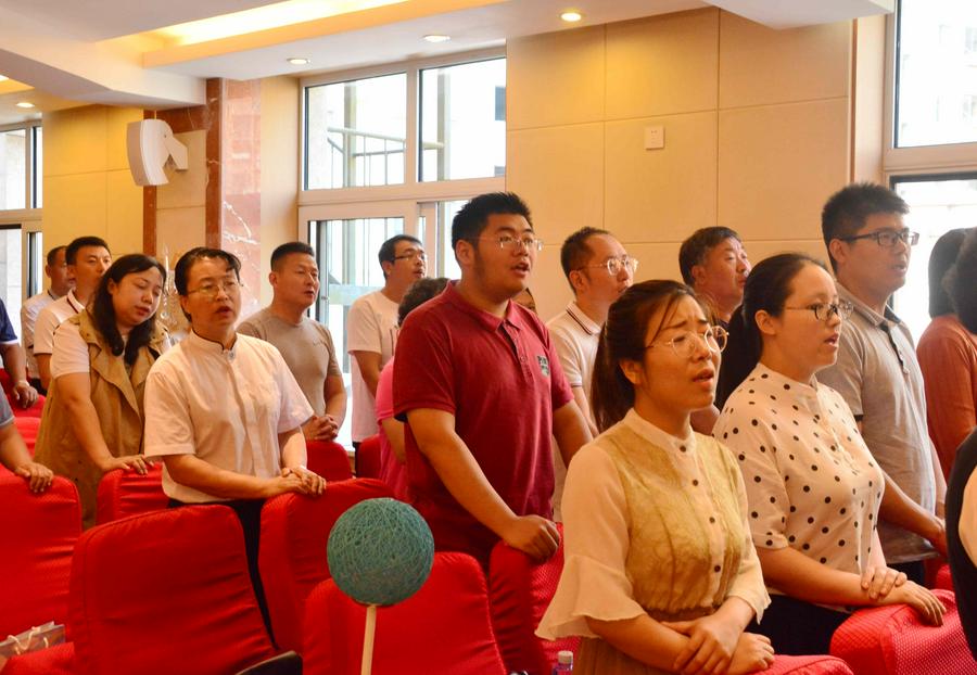 赵永刚主席带领与会的全体教牧神职人员诵读圣经有关章节,高歌赞美三一的真神,献上诚挚、敬拜的祷告。