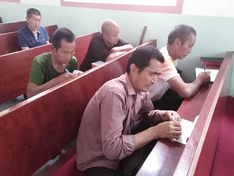 在聚会期间,笔者还利用休息的空闲时间,采访了坐在身旁的一位弟兄。他说自己名叫张黑豆,今年47岁了,家住磻溪镇下源村二组。四年前来到凤鸣村,在村街上开有一家焊修门窗的铺子。说起他自己的信主经历,非常像圣经中讲的那位浪子的父亲。原来,他受信主的母亲影响,从小就知道耶稣,但在信主的路上徘徊多年,直到他有了女儿、当了父亲,还在主殿门外溜达,不入主门。谁料到,已上了初中的女儿成了浪子,成天逃学在外,混迹于社会,让他这位当父亲的伤透了脑筋。