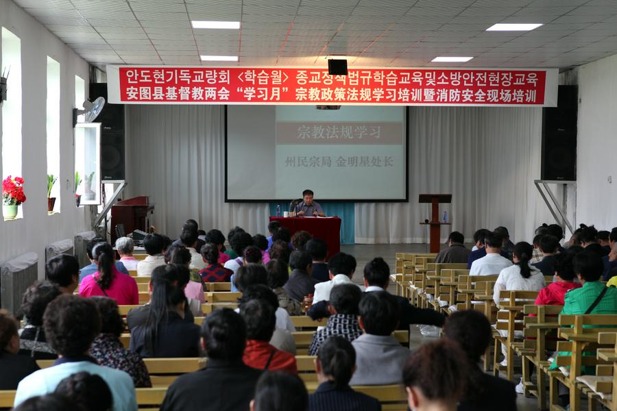 2019年6月20日,安图县基督教两会在安图县明月镇东环基督教堂举行宗教政策法规“学习月”活动暨消防安全现场培训,安图县基督教场所负责人和部分侍奉同工100多人参加培训。