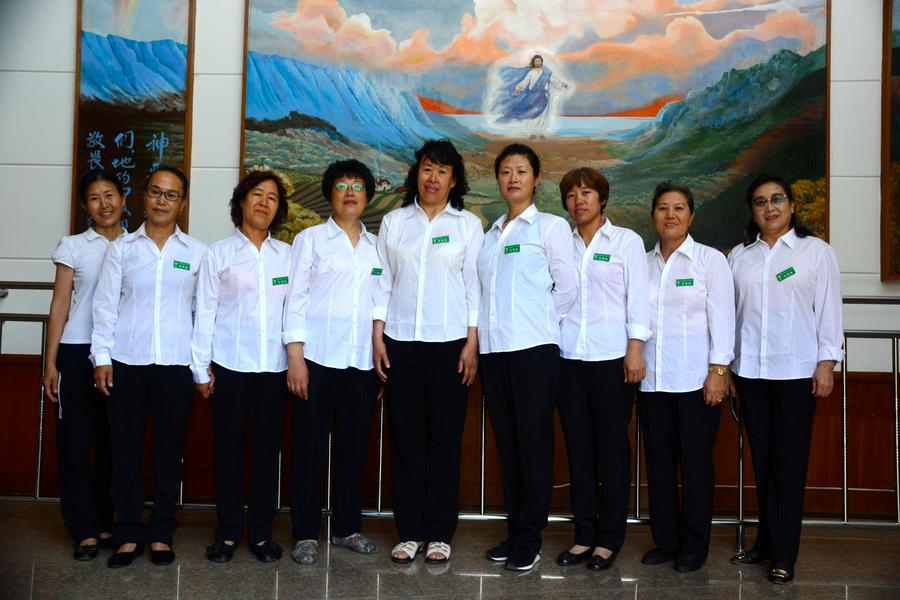 丰收堂追思组的九姊妹为主做工不辞辛苦、默默奉献。有的同工在教会身兼数职,常年不顾小家顾天家;有的姊妹在母亲去世下葬的第二天就来到教会做工侍奉;有的家中也是上有老、下有小,家要管,事工更要做、福音要传;有的身体也是患有疾病,有环境,要靠着仰望神、向神祷告克服困难、克服环境坚持做工……。我对她们说:你们常年坚持栉风沐雨为弟兄姊妹追思服务,真的不容易、真的难能可贵。因为我知道有的教会追思班(组)的个别同工坚持不了,这项事工苦、哭、累,就退出了。你们是最可敬的人,神记念你们。她们说:感谢主!我们所做的都是神的恩典,我们再苦再累也是甘心乐意。