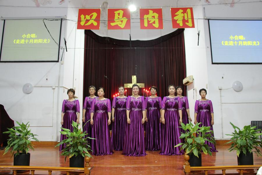 晚上7点20分,在昆山天使管乐队的《好日子》、《我和我的祖国》、《我爱中国教会歌》的演奏中晚会正式开始。晚会中不论是诗朗诵《我的祖国》,还是非洲鼓演奏《大中国》;不论是鼓舞表演,还是小合唱《走进十月的阳光》,都令在场的弟兄姊妹掌声不断,气氛非常热烈。当一曲男声独唱《我的中国心》响起,再一次勾起了大家浓浓的回忆,也激发了大家的爱国之情。接着昆山教会的神学生彭雨恩和朱华牧师,分别以“社会主义核心价值观”的公民和社会层面展开了专题演讲,让大家懂得我们应当做一个诚信的基督徒;我们的自由不是随心所欲,真正的自由是对我们自我的约束。晚会在诗班大合唱《天耀中华》中落下了帷幕。