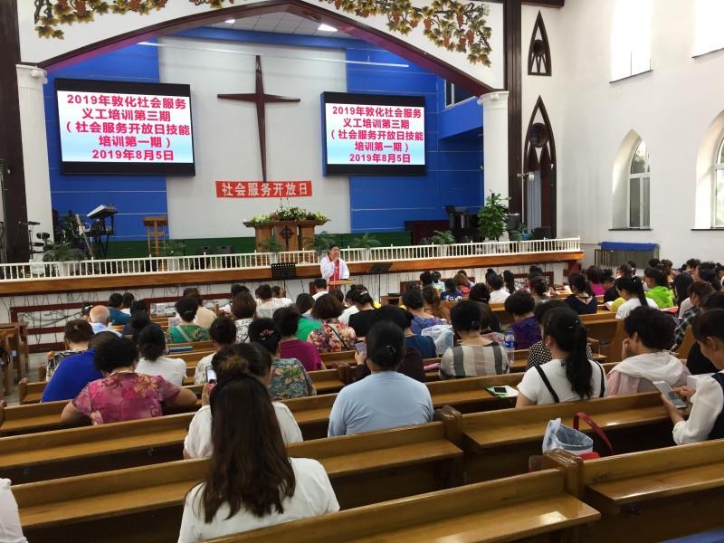 2019年8月5日,吉林敦化市基督教两会举办社会服务第三期义工培训(社会服务开放日第一期技能培训),来自城乡59个社会服务点的核心义工,共123人参加培训。