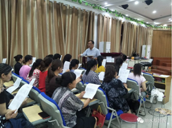第一天,丁牧师从唱诗的发声、咬字吐字、气息运用和诗班管理及形体训练方面给弟兄姐妹们打下基础。