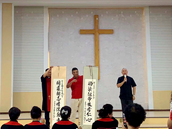 长春海口路教会在赞美会上还向大石桥市新生命堂教会赠送了“桥梁纽带、牧者仁心”、“同道相志,情深爱重”的两幅书法作品,表达了两地教会对神的尊崇和的兄弟情谊、彼此的祝福。会场掌声此起彼伏将荣耀归给神。