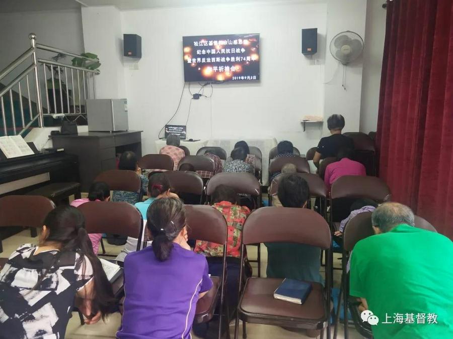 上海市基督教各教堂响应中国基督教两会关于组织开展“纪念中国人民抗日战争胜利74周年和平祈祷”活动。求上帝祝福祖国繁荣昌盛,国泰民安;祝福教会日见兴旺,做光做盐;祝福信徒安居乐业,虔诚度日。为世界长久和平、人类永享平安祈祷,祈祷全世界热爱和平的人们都能在同一片蓝天下和睦共处。
