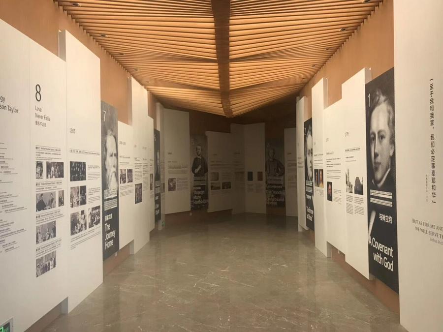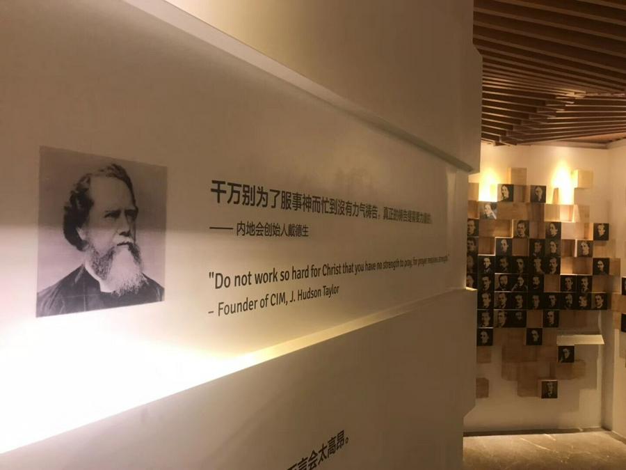 上楼后,便能看到介绍这位传教士的文字和图片。戴德生于1832年出生于英国,父亲是一名医生,主日带领敬拜。他在儿时便对中国产生了兴趣,并对父亲说自己很少在书里看到关于传教士在中国的故事,并萌发了长大后去中国传福音的心。22岁那年,他如愿来到中国,开始了在华传教的生涯。在中国,他脱掉西装、摘掉领带,换上长袍、梳着辫子,走街串巷地传播福音,充分地尊重当地人的习俗和文化。随后他有了同工和妻子,福音工作不断拓展。