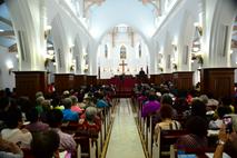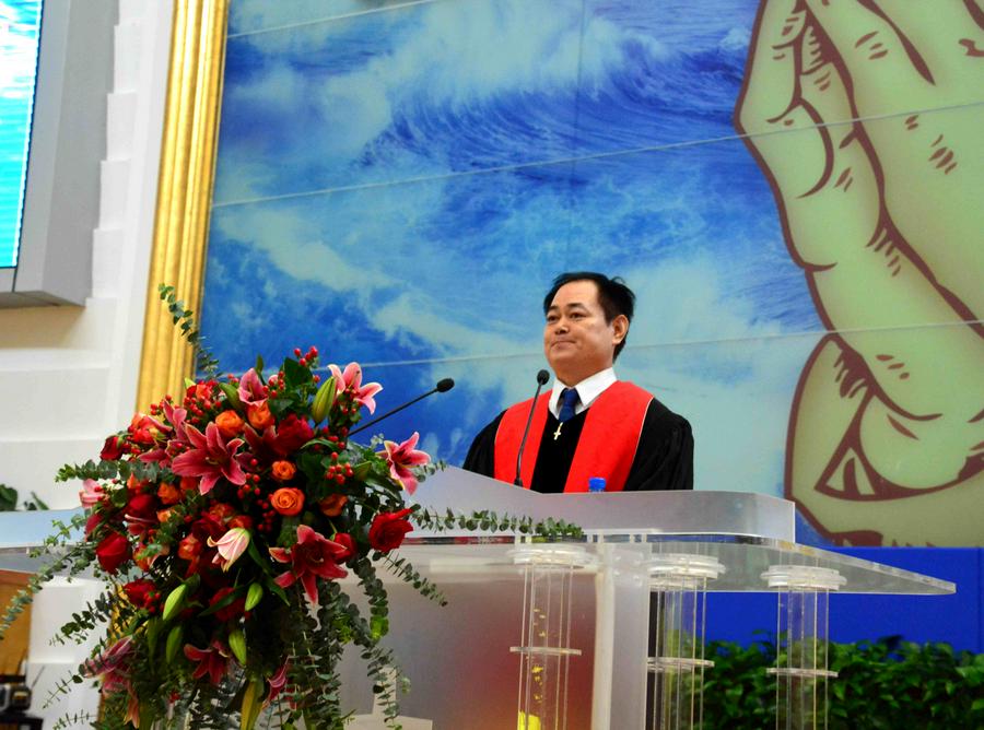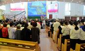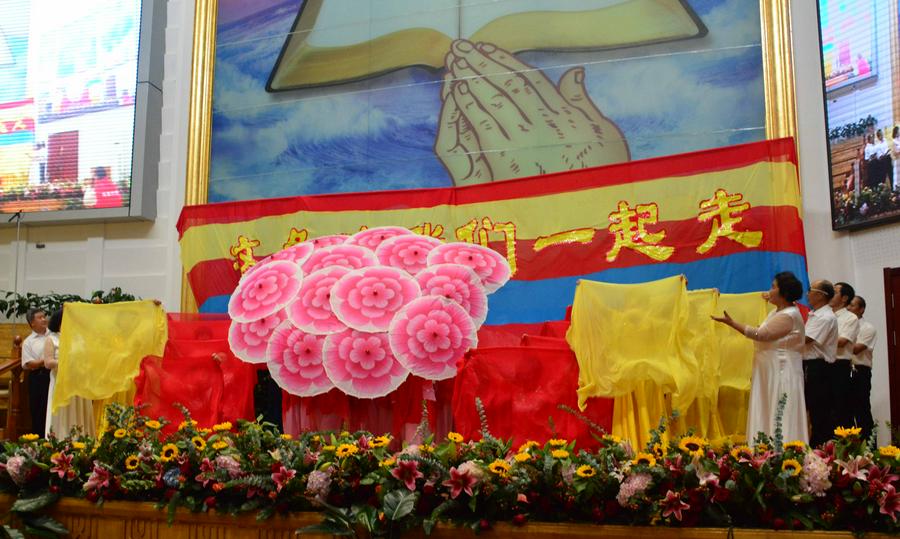这是上帝看好的日子。上午,修葺一新的丰收路教堂洋溢着喜乐的氛围,鲜花绿萝簇拥的圣台和十字架熠熠生辉,以节日新的面貌迎来了前来参加庆典的大连市民宗局的各位领导、大连市基督教两会的各位领导、大连各市、县、区教会的牧长和各团契的负责人。参加庆典的各位弟兄姊妹近三千人。
